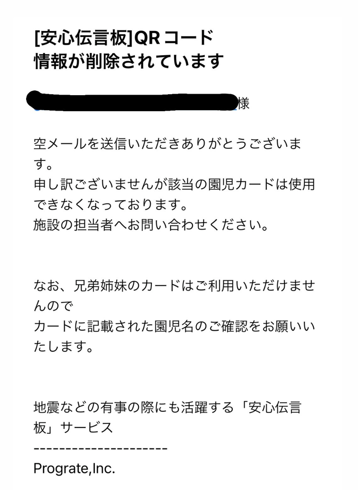 QRコードを読み取ると、下記のようなメールが届く保護者様がいらっしゃいます。