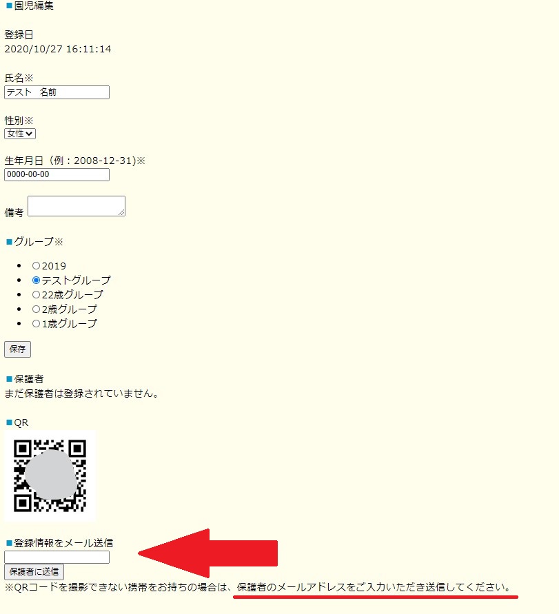 もう一度園児登録をしたQRコードの情報は異なりますので