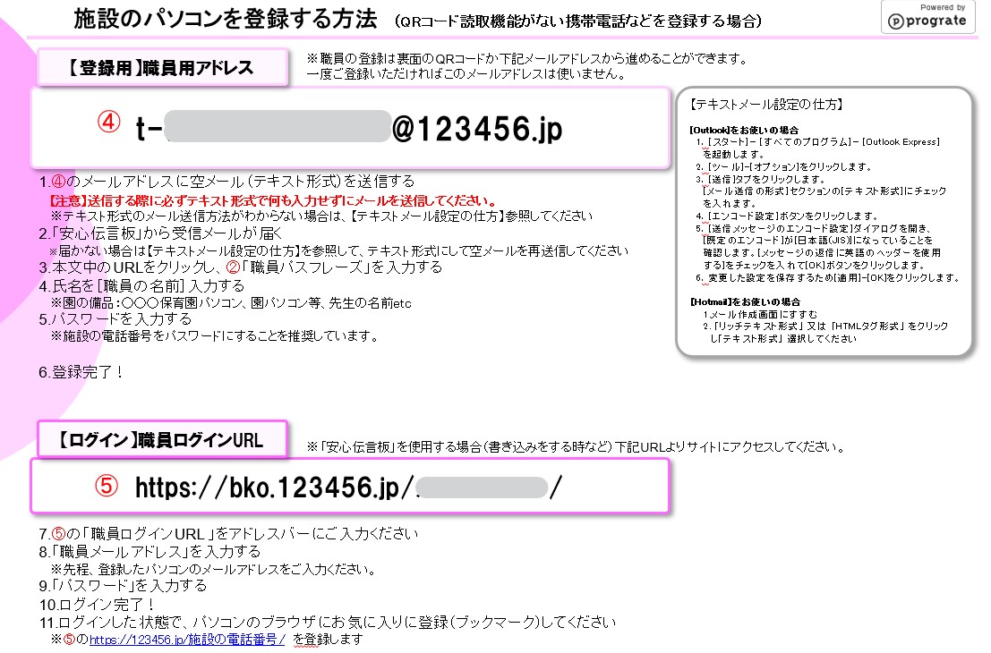 社外秘情報のため、施設様のメールアドレスから施設長の方の操作でメールをお送りください。