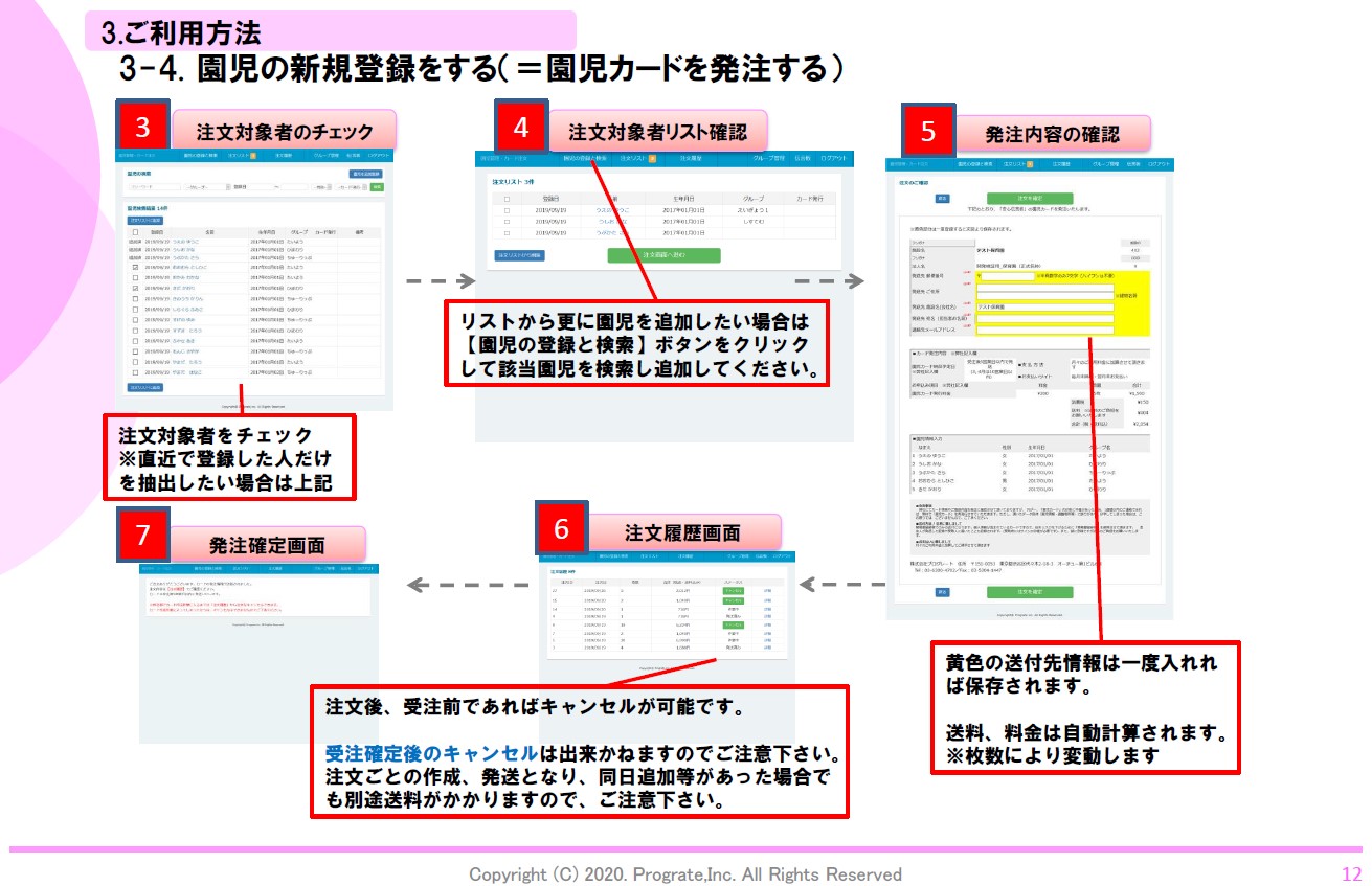 「園児情報の登録」と「ご注文の手続き」をお願いいたします。