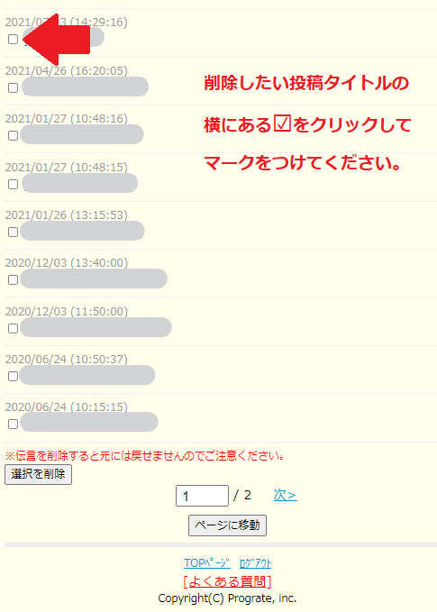 削除した投稿は元に戻すことができかねますので操作にはご注意ください。