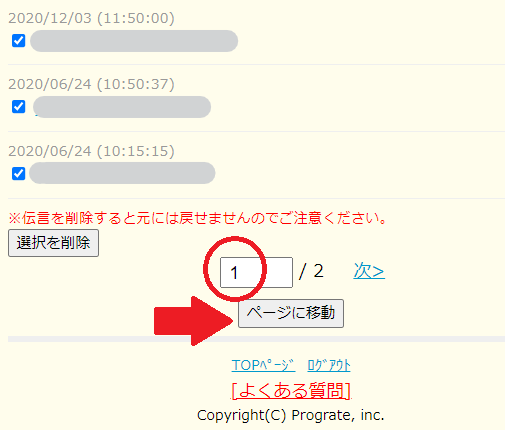 移動したいページ数を入力し、「ページに移動」ボタンをクリックすると
