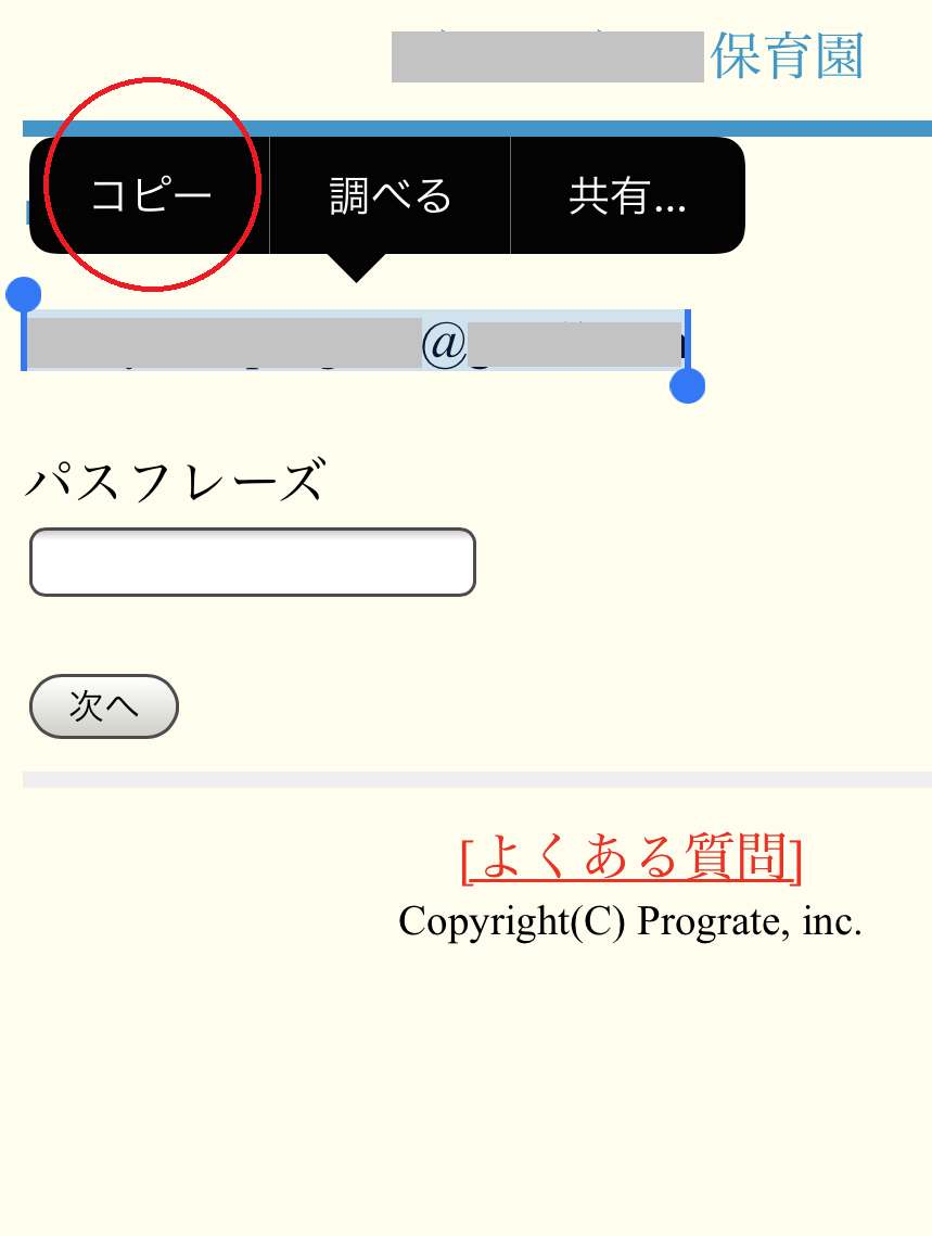 上記に記載されたメールアドレスを一旦コピーしていただきます。