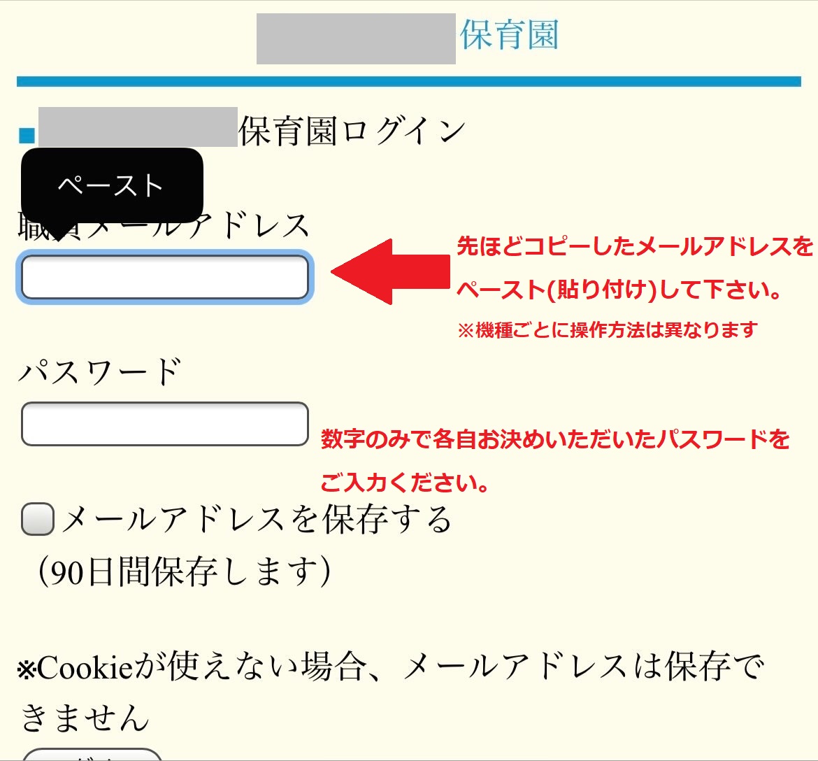 先ほどコピーしたメールアドレスをペースト(貼り付け)し