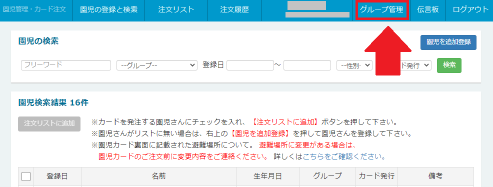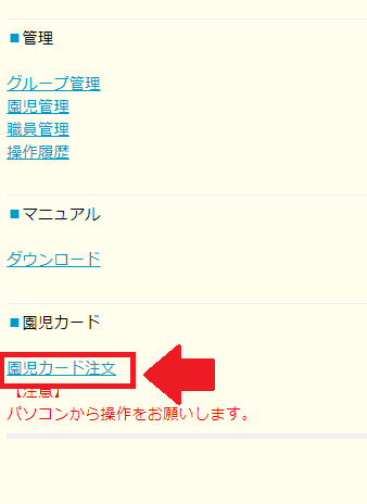 「園児カード注文」を開きます。