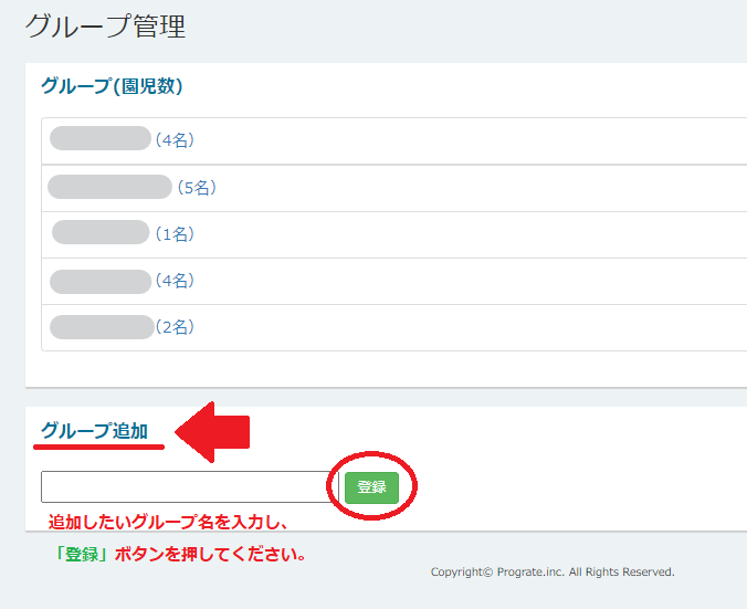 追加したいグループ名を入力し、「登録」ボタンを押してください。