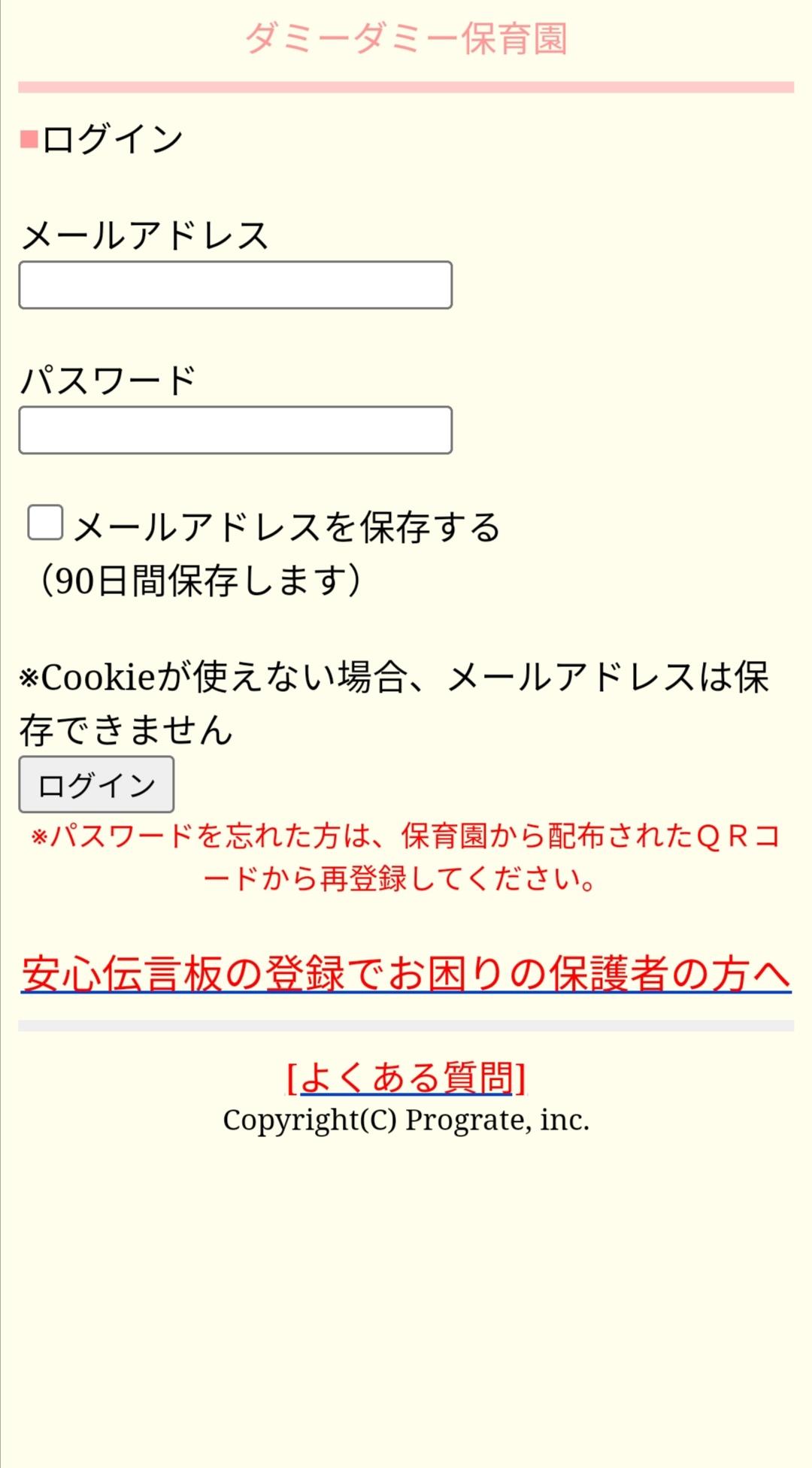 から安心伝言板を開きログインしてください