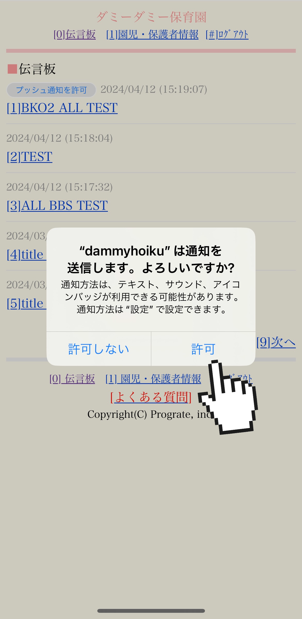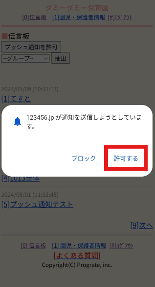 ■STEP3:「通知を送信しようとしています」と画面が出てくるので[許可する]を選択
