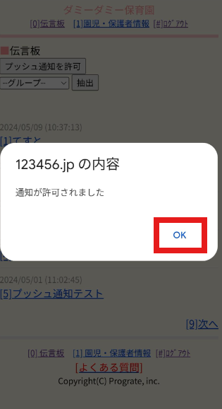 ■STEP4:[通知が許可されました]と画面がでてきたら、[OK]を押して設定完了です