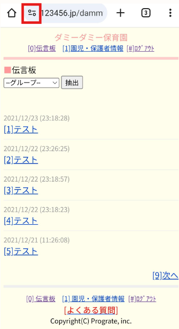 ①Google Chromeアプリから安心伝言板を開き、