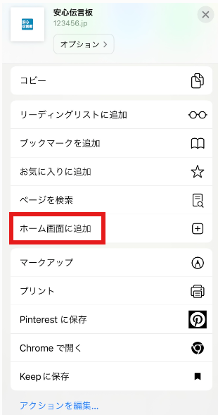 ■STEP3:「ホーム画面に追加」を選択