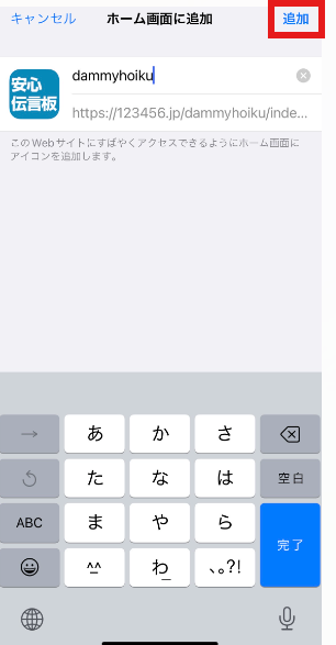 ■STEP4:右上の[追加]を押すとホーム画面に保存されます