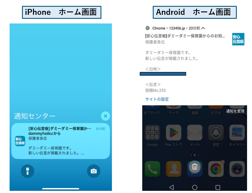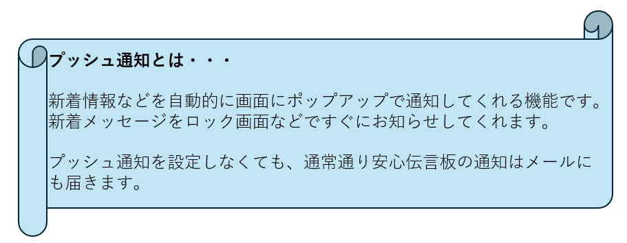 安心伝言板の書込みがされると、スマートフォンにプッシュ通知が届くようになりました。
