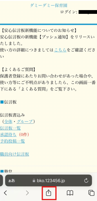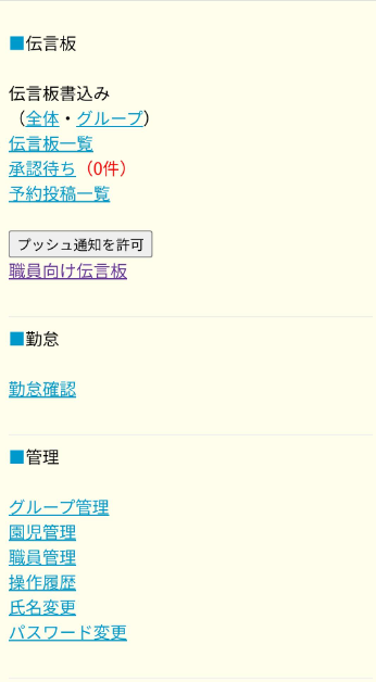 職員向け伝言板機能を使用している園のみ、