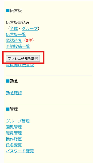 ※通知の許可が完了すると[プッシュ通知を許可]のボタンは表示されなくなります