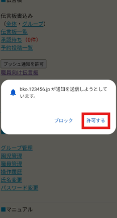 ■STEP3:「通知を送信しようとしています」と画面が出てくるので[許可する]を選択