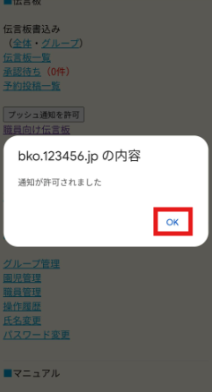 ■STEP4:[通知が許可されました]と画面がでてきたら、[OK]を押して設定完了です