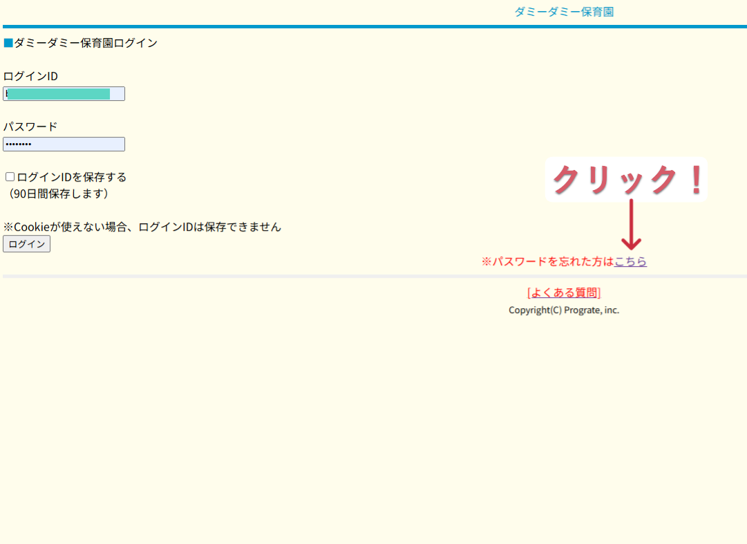 ■STEP1:安心伝言板ログイン画面下部にある※パスワードを忘れた方は「こちら」をクリックします