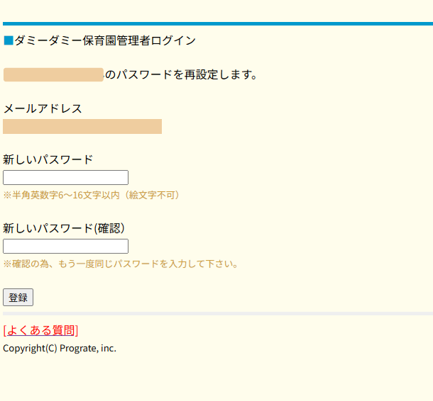 ここで新しいパスワードを再設定し、登録ボタンを押してください
